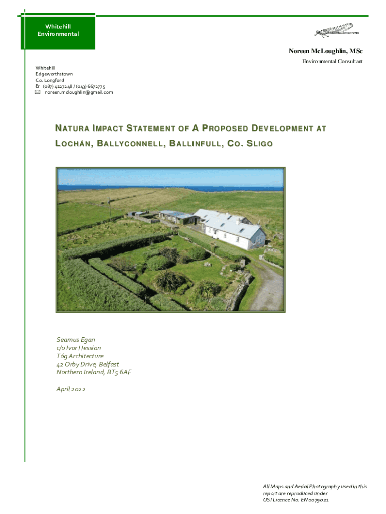 Whitehall Environmental Noreen McLoughlin, M.Sc. Environmental Consultant Whitehall Edgeworthstown Co. Long ford (087) 4127248 / (043) 6672775 noreen.mcloughlin@gmail.comN A T U R A I M PA C T S T