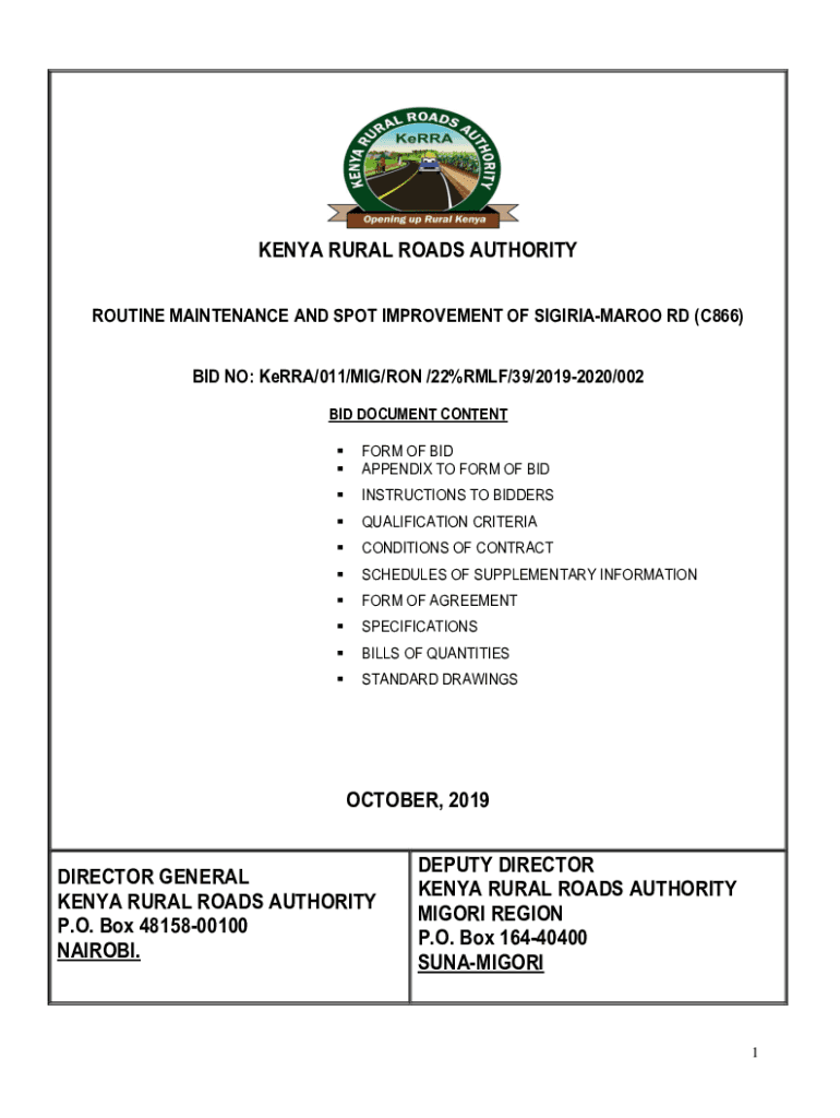 Get the free ROUTINE MAINTENANCE AND SPOT IMPROVEMENT OF SIGIRIA-MAROO RD (C866)