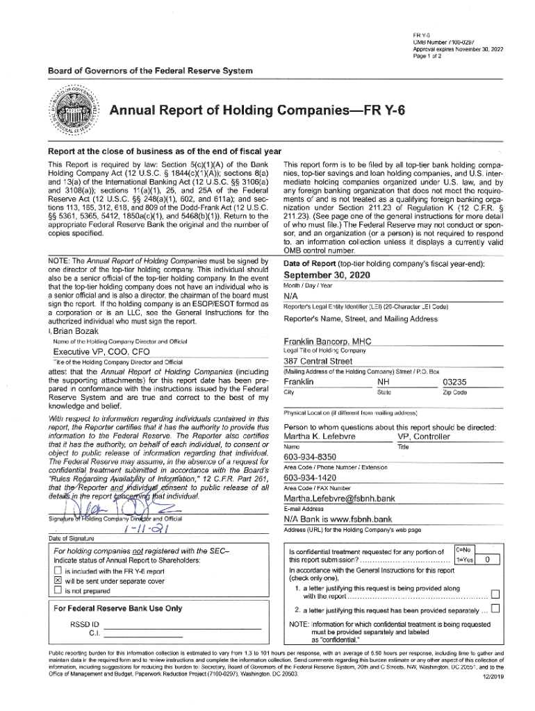 FR Y6 Annual Report