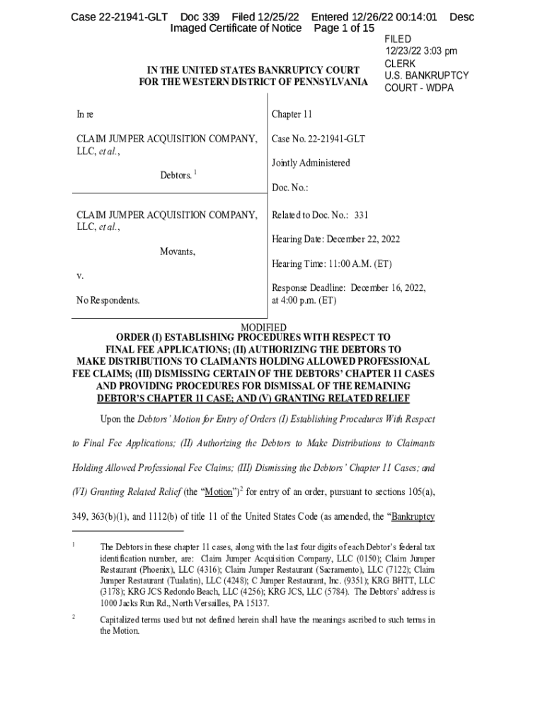 Case 2221941GLTDoc 339 Filed 12/25/22 Entered 12/26/22 00:14:01 Disc Imaged Certificate of Notice Page 1 of 15 FILED 12/23/22 3:03 pm CLERK IN THE UNITED STATES BANKRUPTCY COURT U.S. BANKRUPTCY FOR