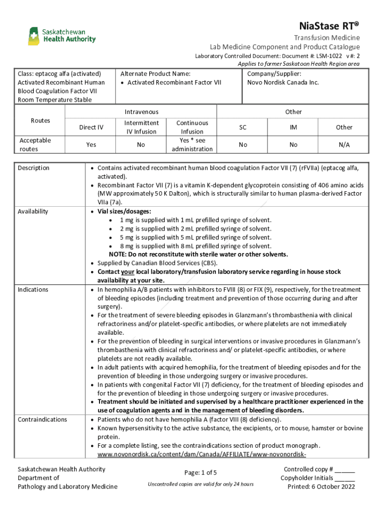 Get the free Niastase RT Product Info - Alberta Health Services