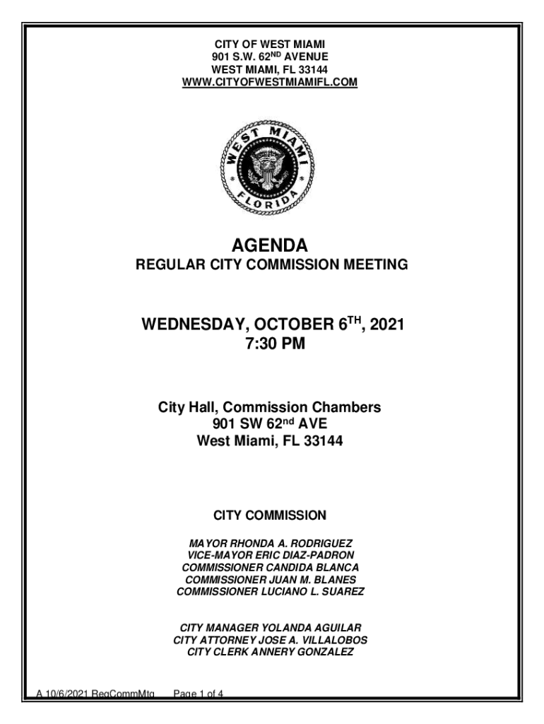 WWW.CITYOFWESTMIAMIFL.AGENDA