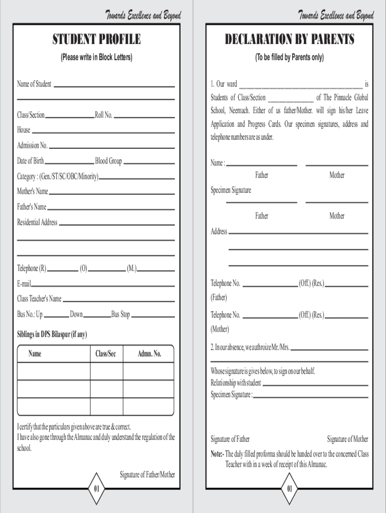 Towards Excellence and BeyondTowards Excellence and BeyondSTUDENT PROFILEDECLARATION BY PARENTS(Please write in Block Letters)(To be filled by Parents only)Name of Student