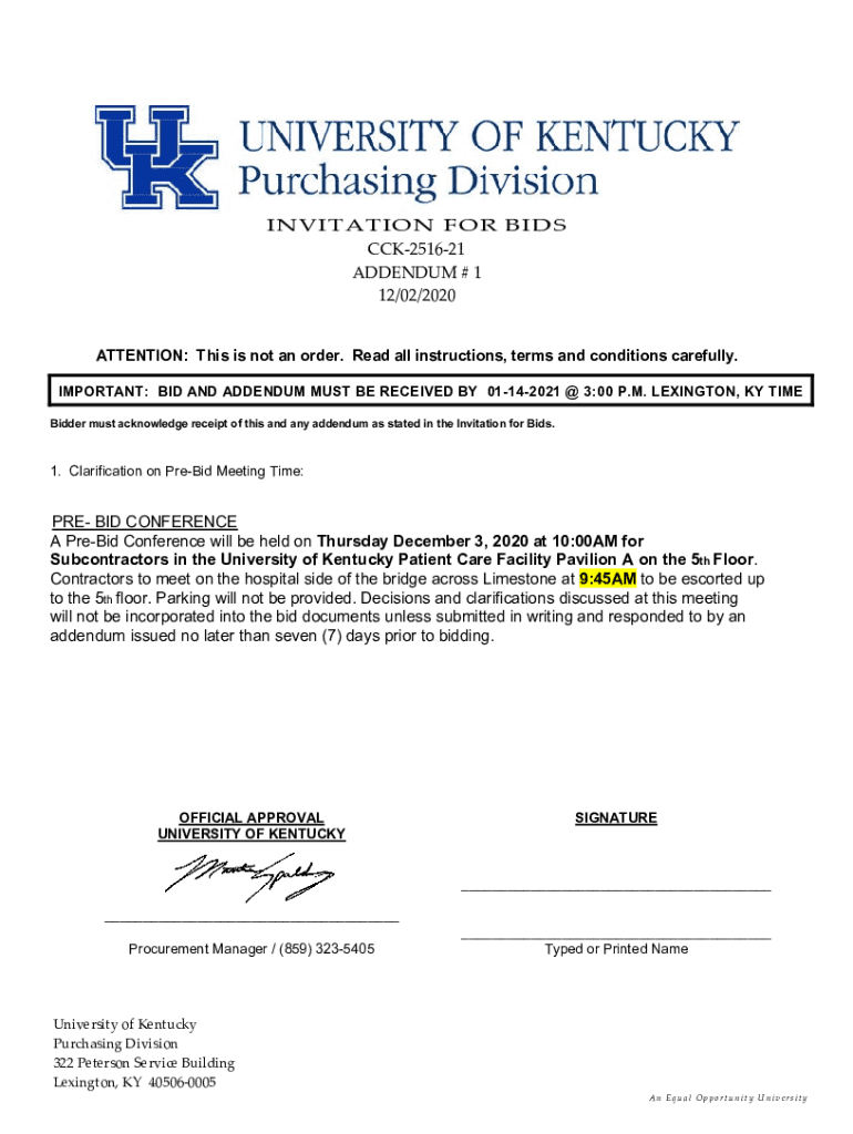 Get the free IMPORTANT: BID AND ADDENDUM MUST BE RECEIVED BY 01-14-2021 3:00 P