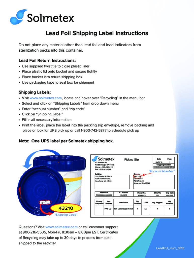 Lead Foil Shipping Label Instructions Do not place any material other than lead foil and lead indicators from sterilization packs into this container. Lead Foil Return Instructions: Use supplied twist
