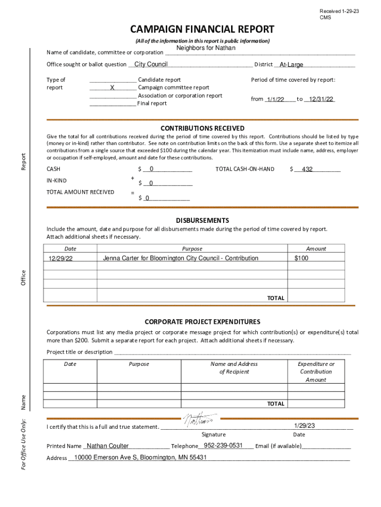 Fill out your nathan coulterminnesota state house online with pdfFiller!