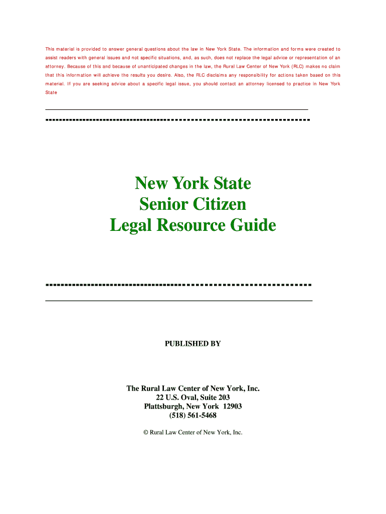 Get the free New York State Senior Citizen Legal Resource Guide - Rural Law bb - rurallawcenter