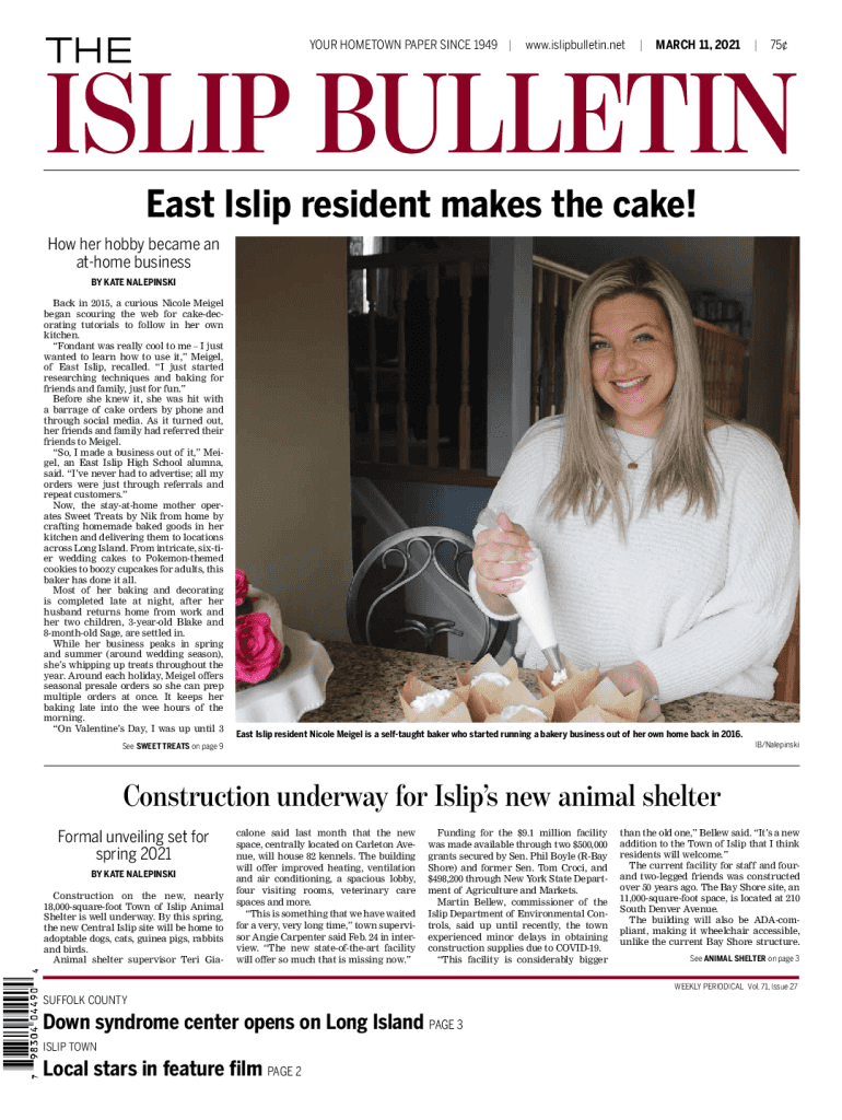 YOUR HOMETOWN PAPER SINCE 1949 |www.islipbulletin.net|MARCH 11, 2021|75East Slip resident makes the cake! How her hobby became an at home business BY KATE NALEPINSKI Back in 2015, a curious Nicole
