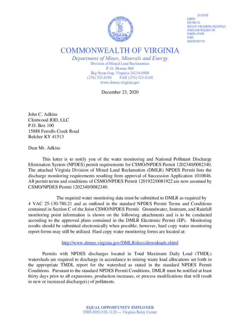 Get the free Elimination System (NPDES) permit requirements for CSMO/NPDES Permit 1202340/0082340