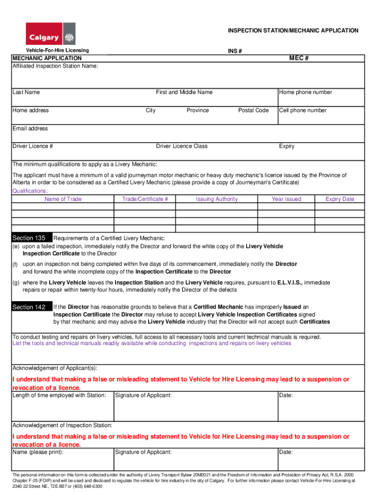 Get the free inspection station/mechanic application ins - The City of Calgary