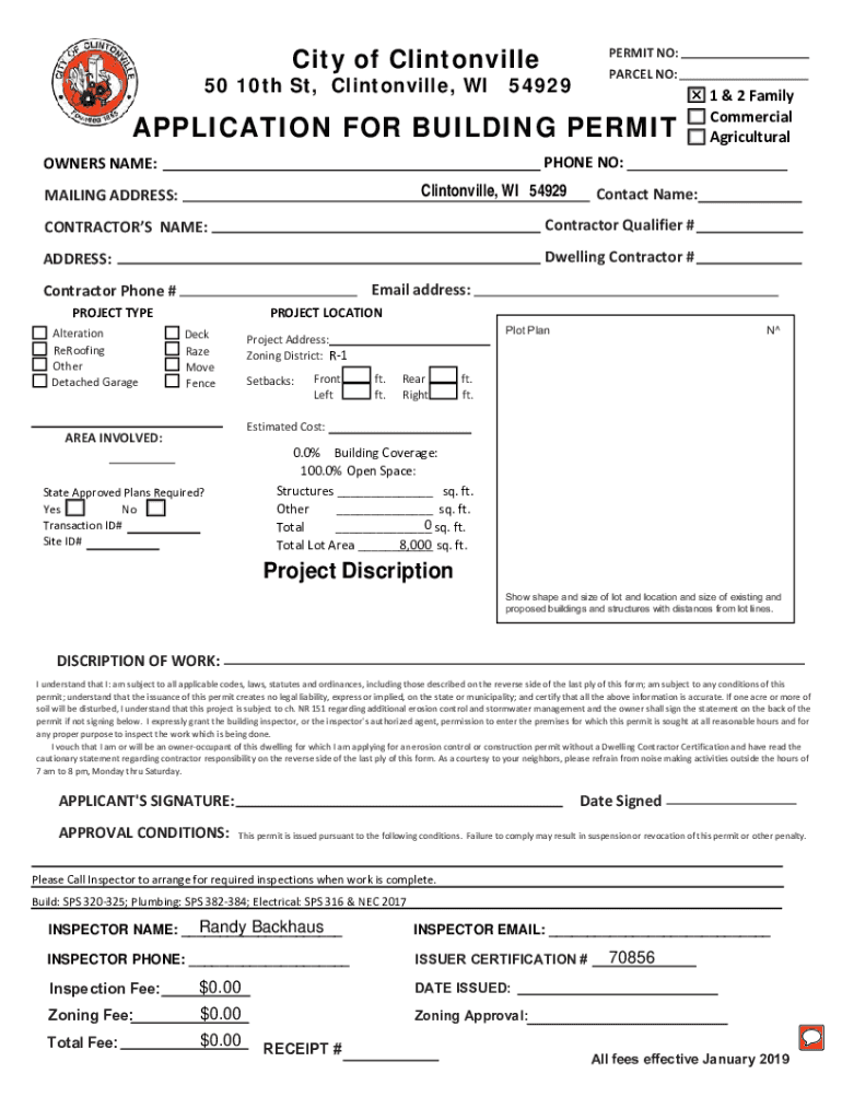 Get the free Building Permits and Inspections - City of Clintonville