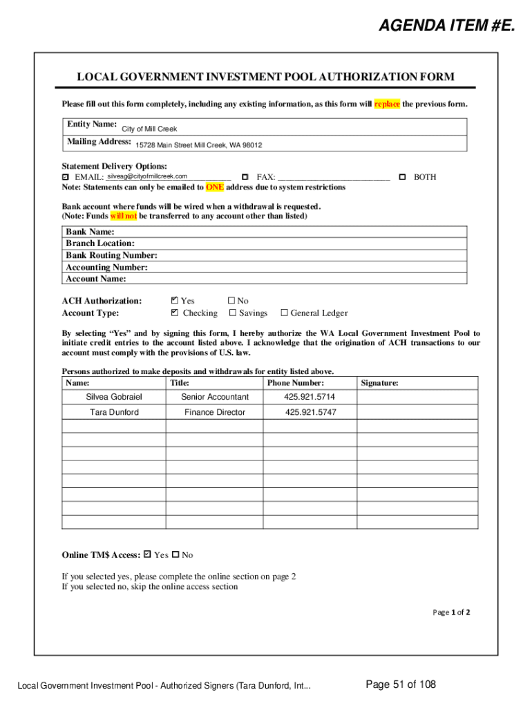 15728 Main Street, Mill Creek, WA 98012 (425) 7451891Pam Pruitt, Mayor Brian Holtzclaw, Mayor Pro Tem Mark Bond