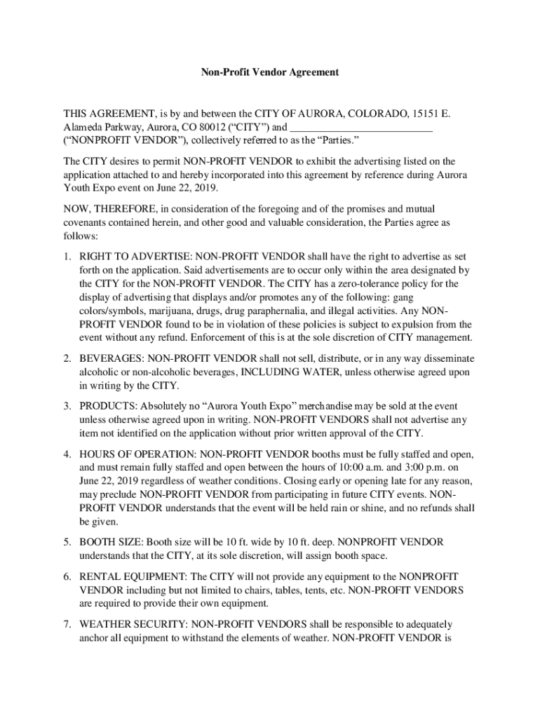 Get the free Non-Profit Vendor Agreement - CivicLive