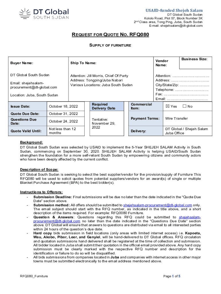 Email: shejehsalam@dtglobal.comREQUEST FOR QUOTE NO. RFQ080