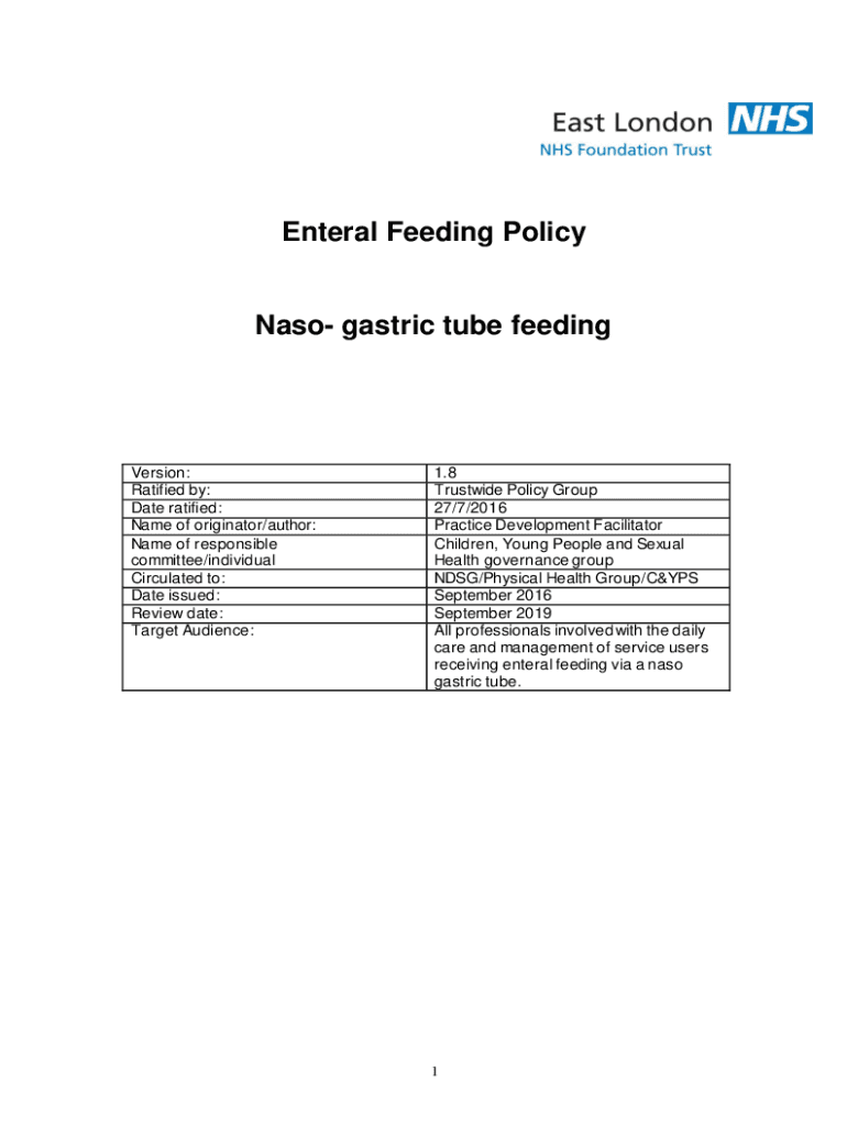 Get the free Infection control in enteral feeding - policy for adults