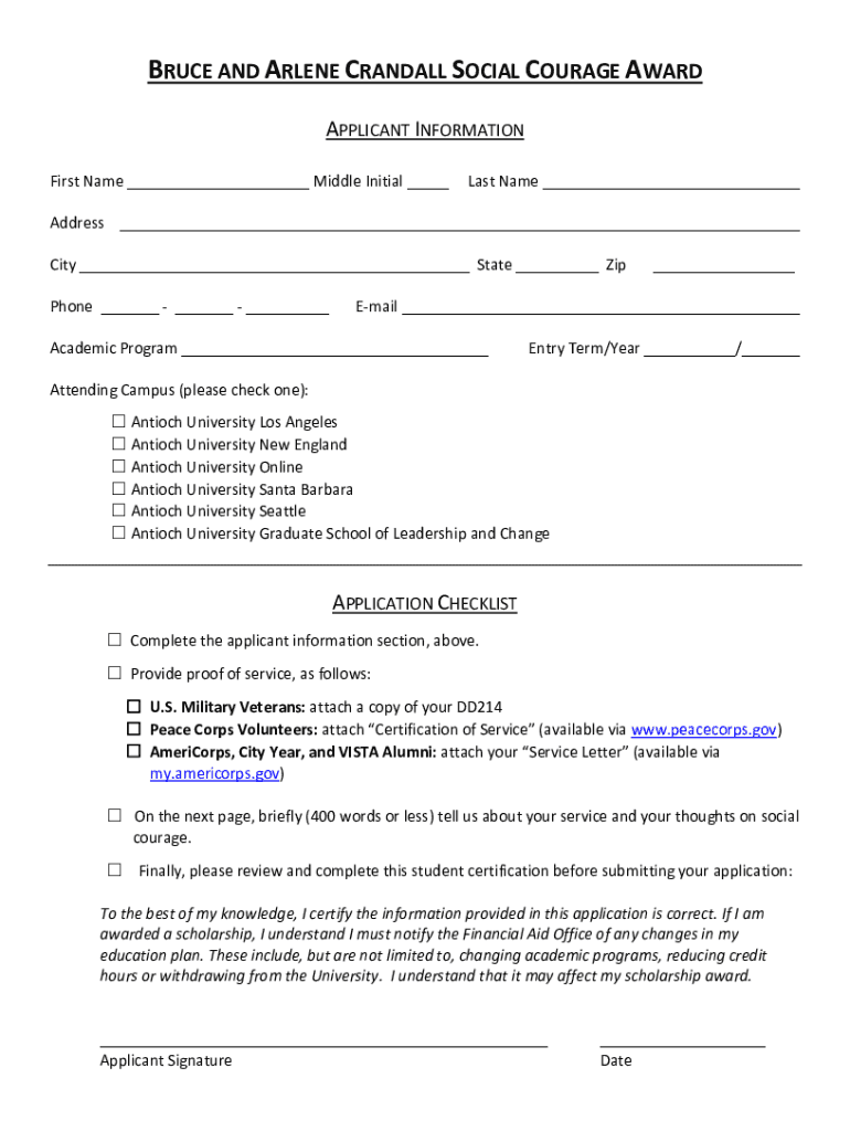 Get the free Bruce and Arlene Crandall Social Courage AwardAntioch ...