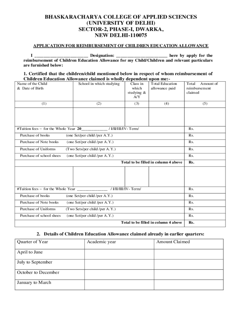 Get the free Application for Reimbursement of Children Education Allowance