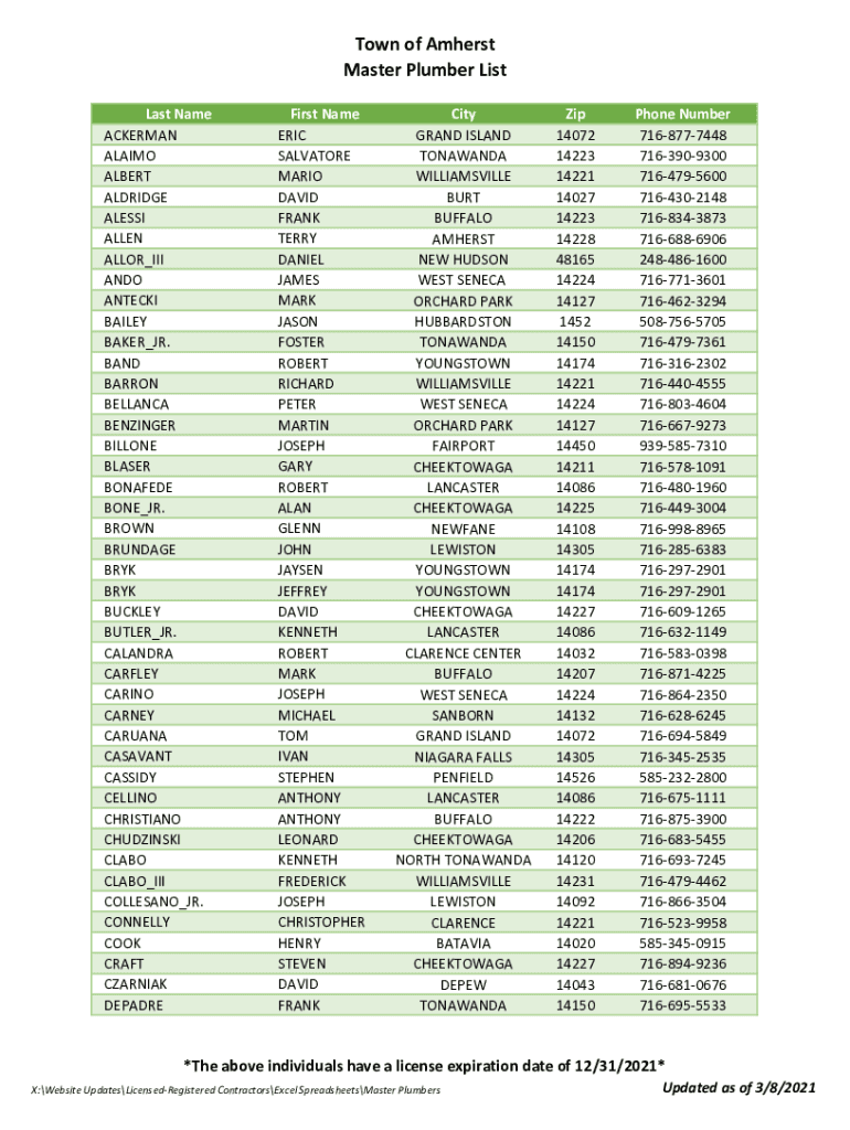 Fill out your master plumber list online with pdfFiller!