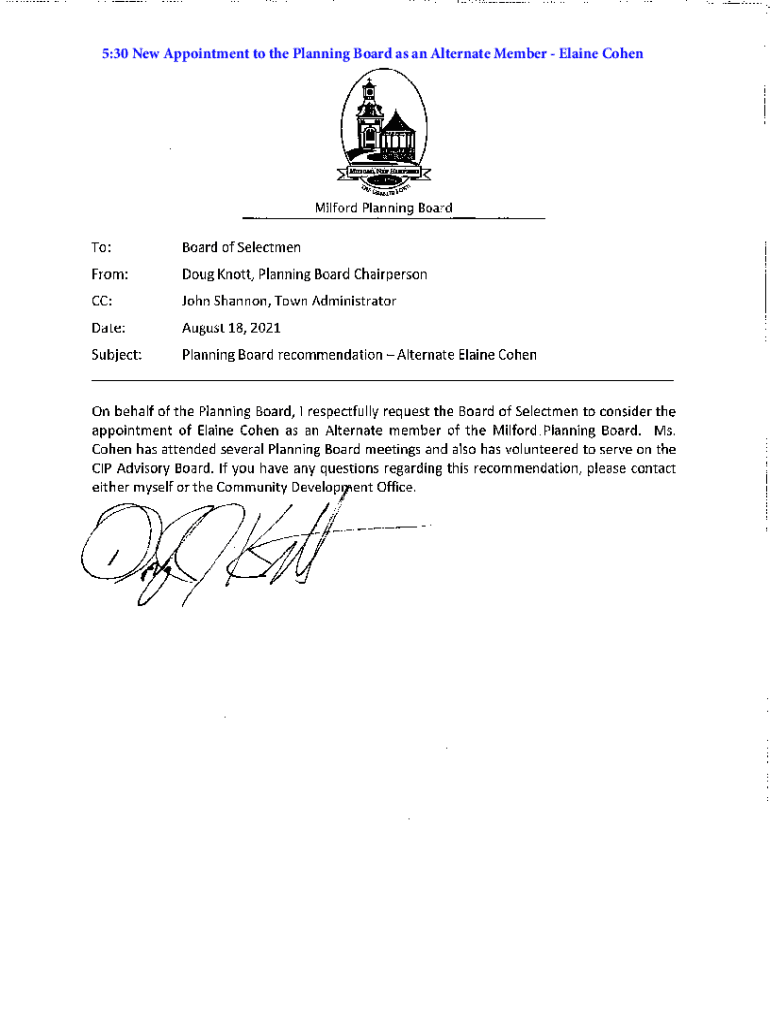pdfFiller has made it easy to fill out and sign elaine cohen - milfordnhgov. You can use the solution to change and move PDF content, add fields that can be filled in, and sign the document electronically. Start a free trial of pdfFiller, the best tool for editing and filling in documents.