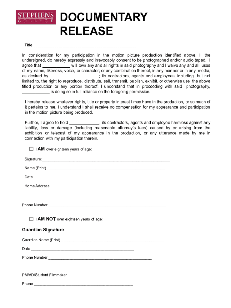 To fill out a documentary release, one must provide all required information, sign and date the form where necessary, and submit it according to the specific guidelines.