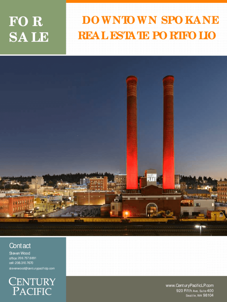 FOR SALEDOWNTOWN SPOKANE REAL ESTATE PORTFOLIOContact Steven Wood office: 206.757.8891 cell: 206.310.7670 stevenwood@centurypacificlp.comwww.CenturyPacificLP.com 920 Fifth Ave, Suite 400 Seattle,
