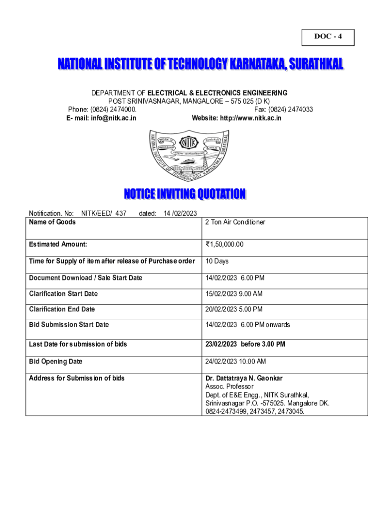 Get the free No: NITK/EED/ 437
