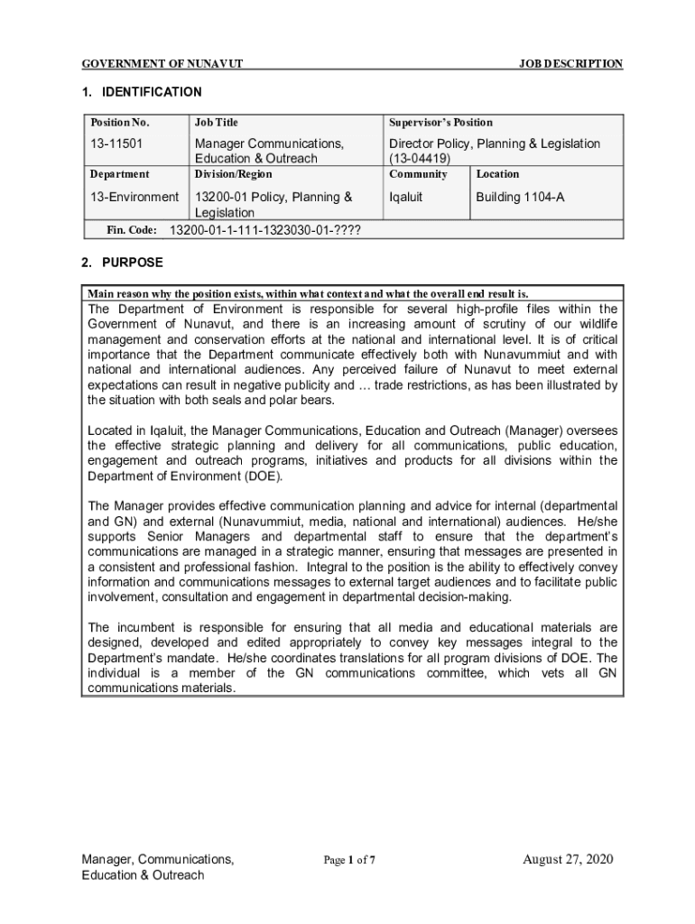 GOVERNMENT OF NUNAVUT DESCRIPTION1. IDENTIFICATION