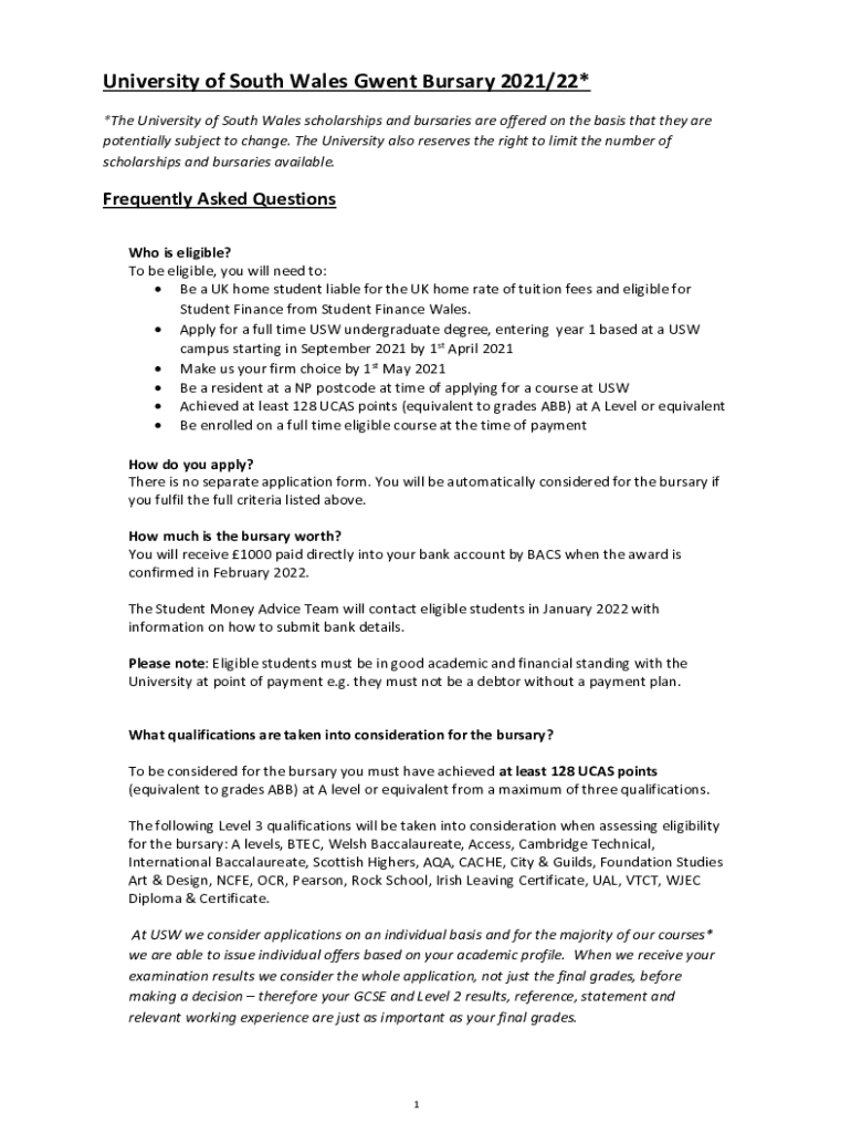 Get the free Bursaries and ScholarshipsUniversity of South Wales