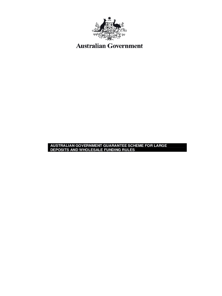 AUSTRALIAN GOVERNMENT GUARANTEE SCHEME FOR LARGE DEPOSITS AND WHOLESALE FUNDING RULESCONTENTS1. Interpretation12. Scheme Administrator33. Applications for Eligibility Certificates, the Final Application
