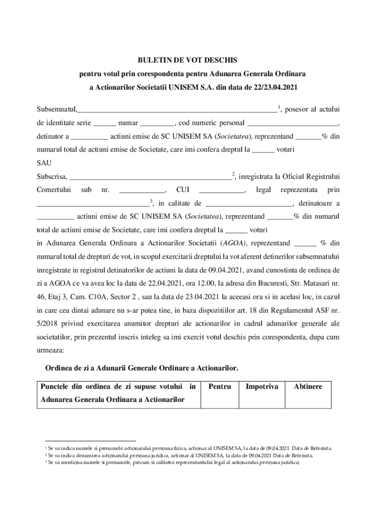 Get the free buletin de vot deschis prin corespondenta - Unisem Romnia