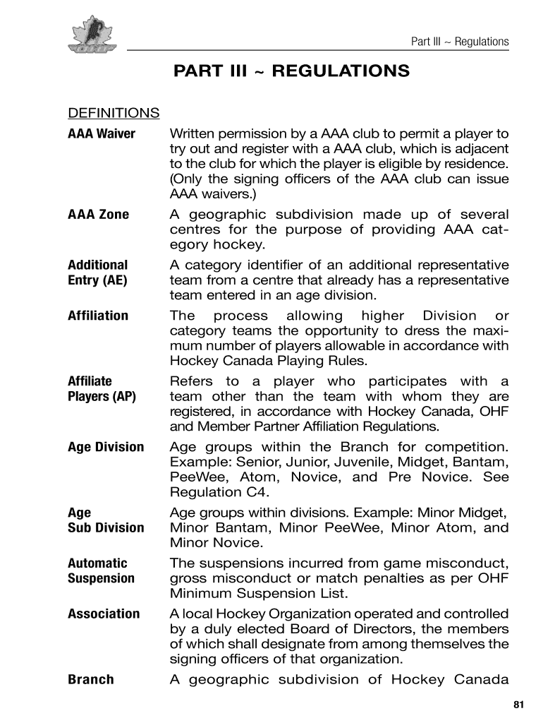 Get the free PART III REGULATIONS - Ontario Hockey Federation - ohf on