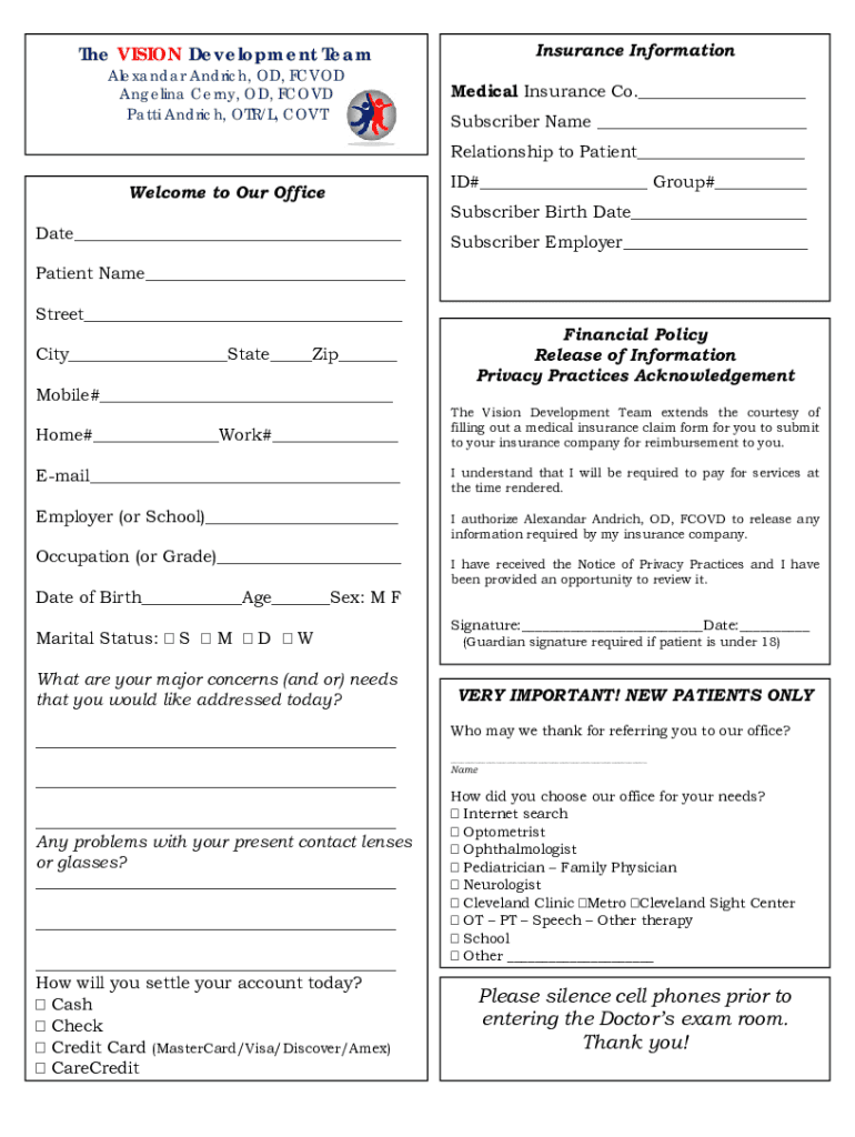 The VISION Development Team Alexander And rich, OD, FOOD Angelina CERN, OD, FCO VD Patti And rich, OR/L, Coinsurance Information Medical Insurance Co.___ Subscriber Name ___ Relationship to Patient___Welcome