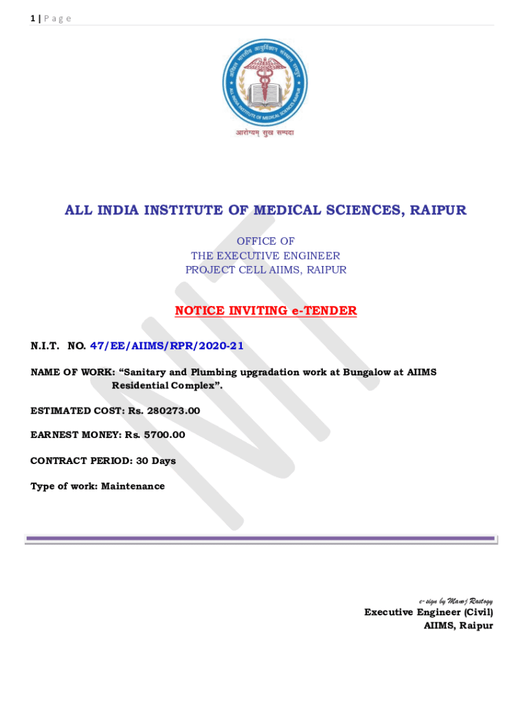 N.I.T. NO. 47/EE/AIMS/RPR/202021