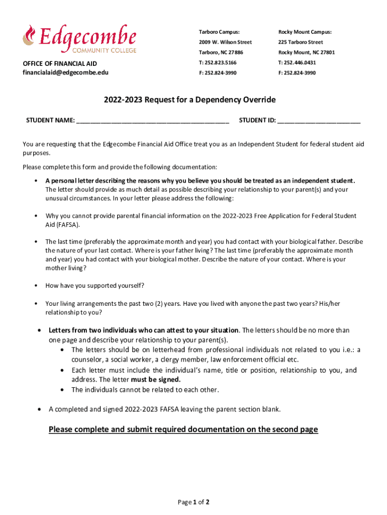Get the free You are requesting that the Edgecombe Financial Aid Office treat you as an Independe...