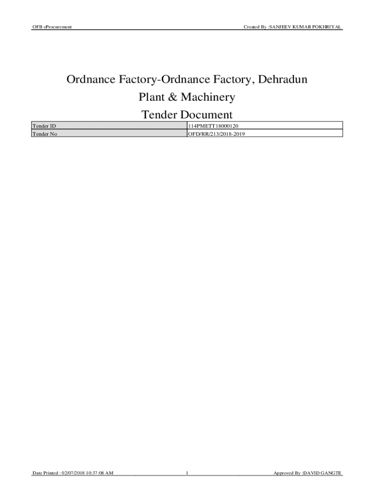 OF eProcurementCreated By :SANJEEV KUMAR POKHRIYALOrdnance FactoryOrdnance Factory, Dehradun