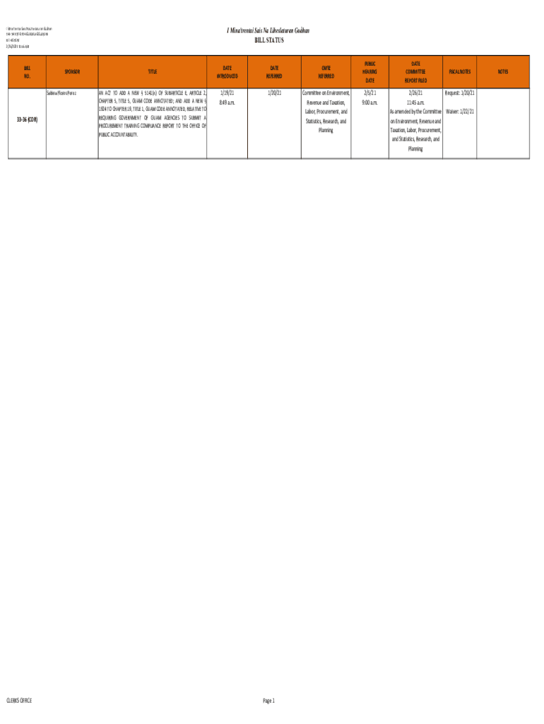 Get the free I Mina'trentai Sais Na Liheslaturan Guhan - Senator Perez