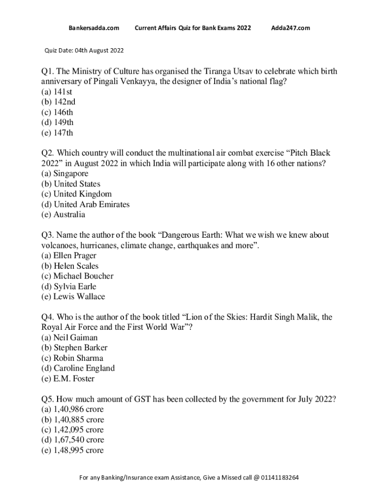 Bankersadda.concurrent Affairs Quiz for Bank Exams 2022Adda247.comic Date: 04th August 2022Q1. The Ministry of Culture has organized the Tirana UTSA to celebrate which birth