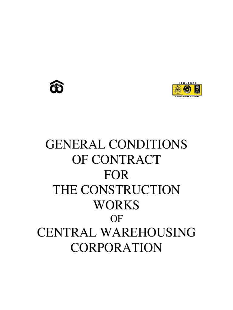 GENERAL CONDITIONS OF CONTRACT FOR THE CONSTRUCTION WORKS CENTRAL WAREHOUSING CORPORATION:1: PERCENTAGE RATE / ITEM RATE TENDER AND CONTRACT S. No. INDEX Page Nos.1. 2. Guidelines for use of standard