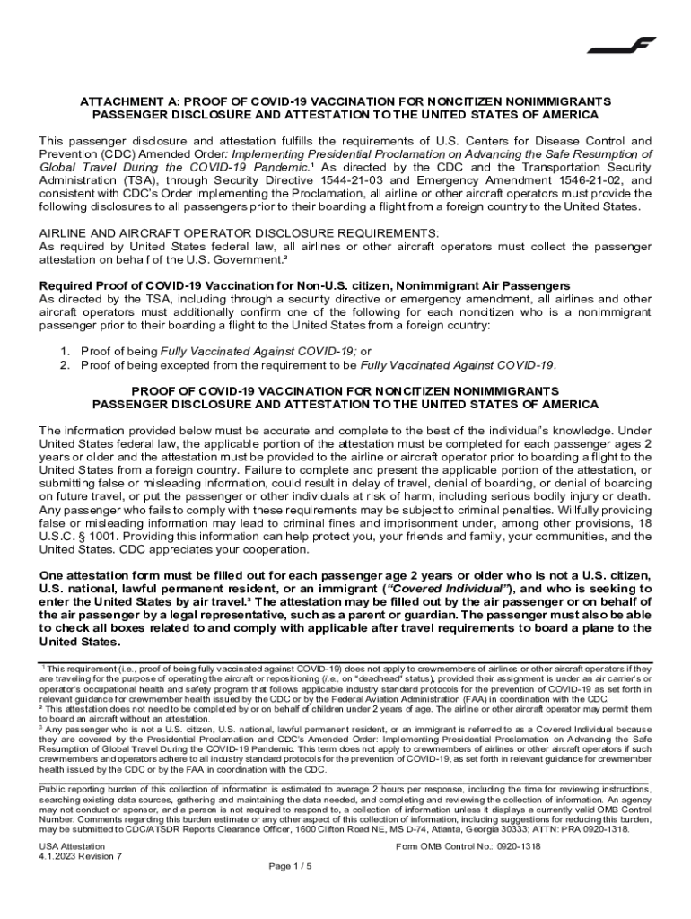 ATTACHMENT A: PROOF OF COVID-19 VACCINATION FOR CITIZEN IMMIGRANTS PASSENGER DISCLOSURE AND ATTESTATION TO THE UNITED STATES OF AMERICA This passenger disclosure and attestation fulfills the requirements