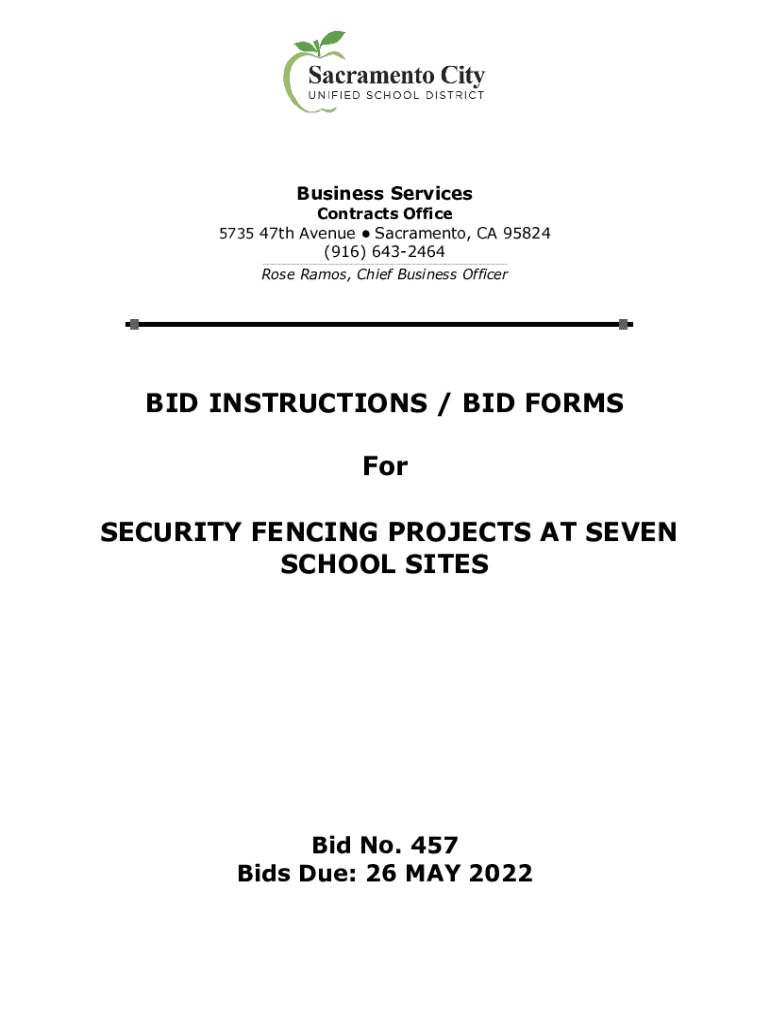 Business Services Contracts Office 5735 47th Avenue Sacramento, CA 95824 (916) 6432464 ___Rose Ramos, Chief Business Officer BID INSTRUCTIONS / BID FORMS For SECURITY FENCING PROJECTS AT SEVEN SCHOOL