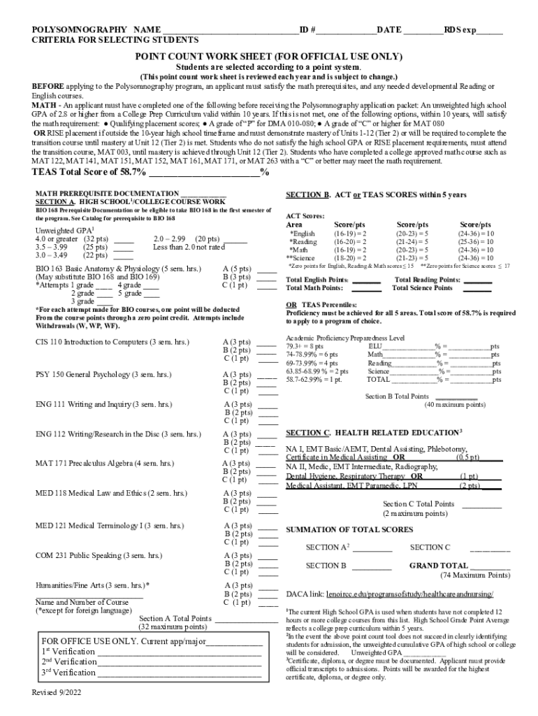 How to fill out polysomnography point count worksheet