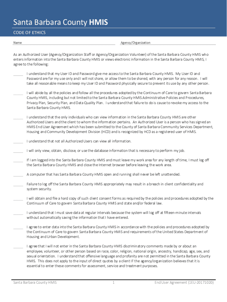 Get the free HMIS User Policy, Responsibility Statement and Code of Ethics