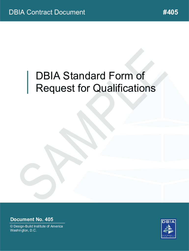DBA Contract Documentarian Standard Form of Request for QualificationsDocument No. 405 DesignBuild Institute of America Washington, D.C.DBA Document No. 405 DBA Standard Form of Request for Qualifications