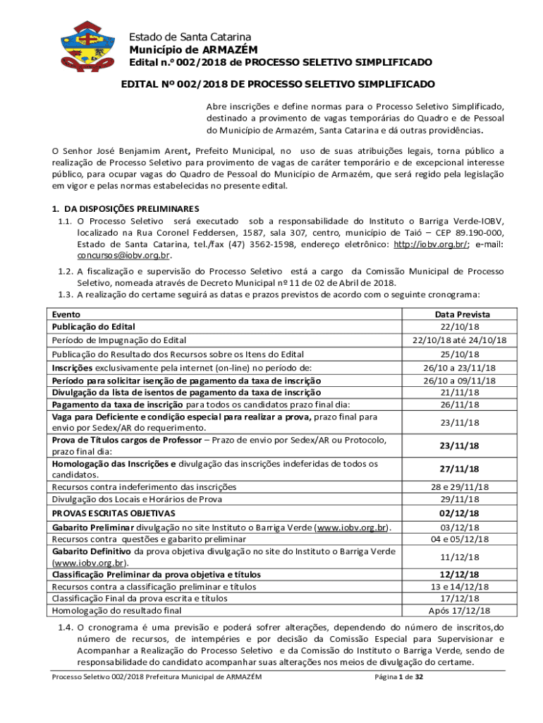 Edital n. 002/2018 DE PROCESS SELECTIVE SIMPLIFIED