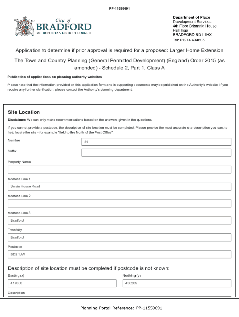 PP11559691Application to determine if prior approval is required for a proposed: Larger Home Extension The Town and Country Planning (General Permitted Development) (England) Order 2015 (as amended)
