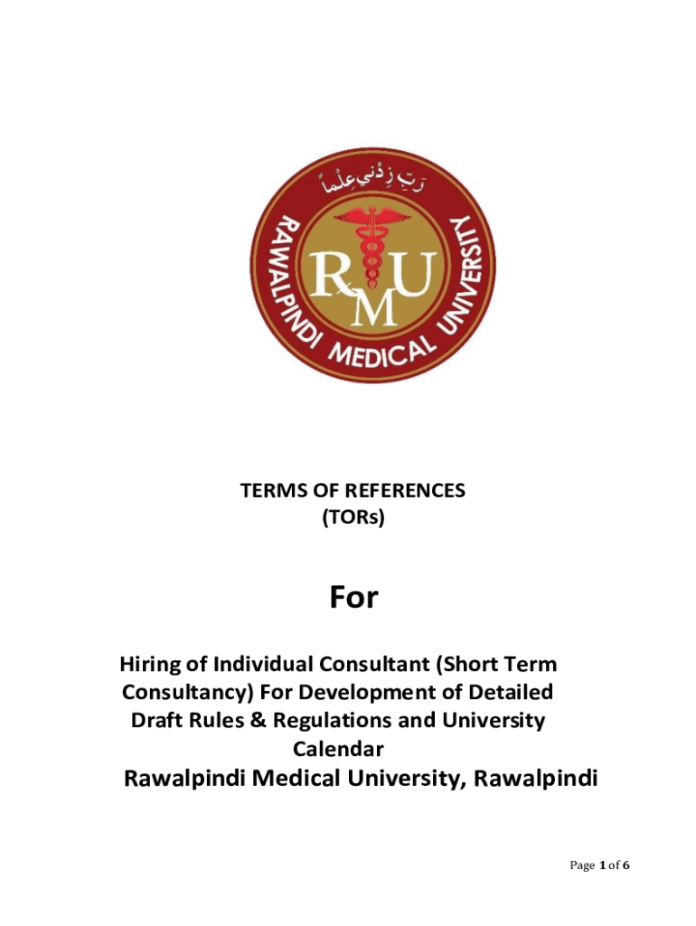 TERMS OF REFERENCES (Tors)For Hiring of Individual Consultant (Short Term Consultancy) For Development of Detailed Draft Rules & Regulations and University Calendar Rawalpindi Medical University,