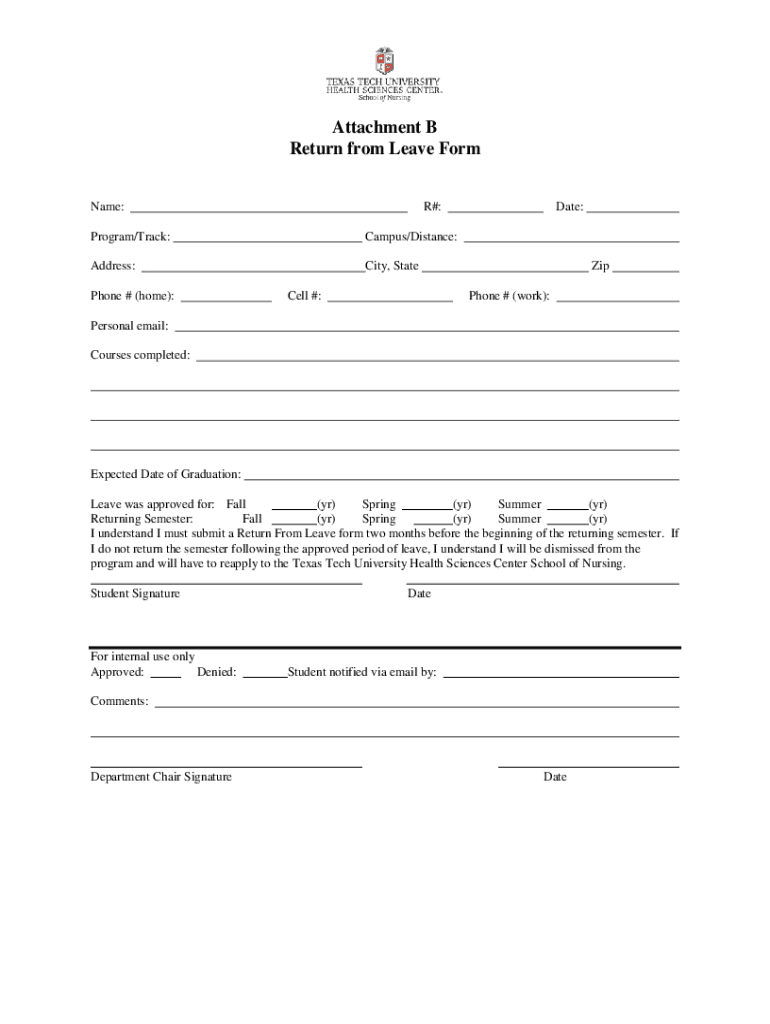 Get the free Return from Leave Form -to - nursing ttuhsc