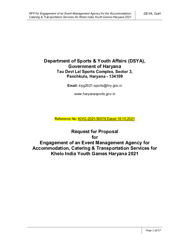 RFP for Engagement of an Event Management Agency for the Accommodation, Catering & Transportation Services for Held India Youth Games Haryana 2021DSYA, Department of Sports & Youth Affairs (DSA),