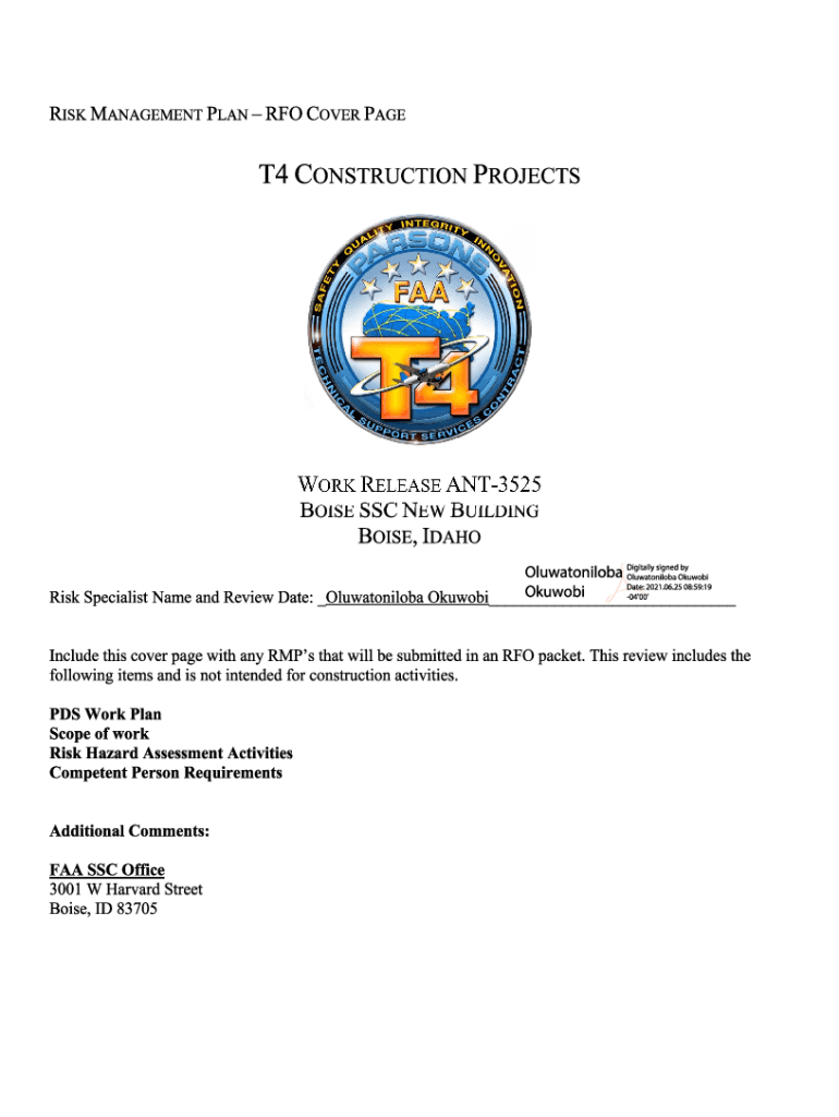 TABLE OF CONTENTS SECTION I: PROJECT INFORMATION (TO BE COMPLETED BY THE PARSONS PROJECT MANAGER) PROJECT INFORMATION SHEET SCOPE OF WORK & PROJECT ASSUMPTIONS EMERGENCY ACTION PLANNING RISK & HAZARD