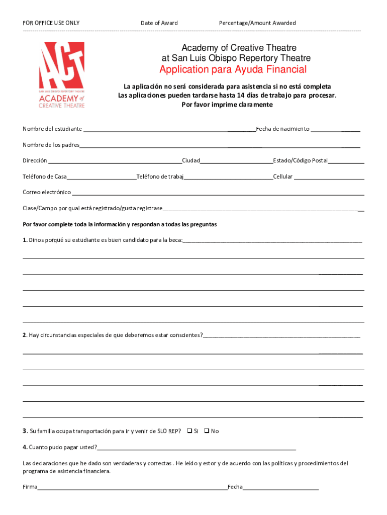 Obtener el gratis Financial Assistance - San Luis Obispo Repertory Theatre